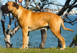 Arrow has a BEAUTIFUL temperament, an AMAZING presence and GREAT movement for such a big boy. We will be forever grateful to his breeders Terrence & Kerry Kelly from Bullarmour Bullmastiffs for entrusting us with our beautiful boy.